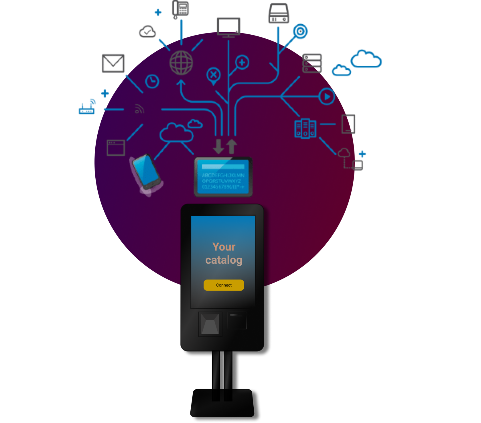 Програмне забезпечення кіоску можна інтегрувати з будь-якою системою обліку, що дасть можливість природньо ввести його у середовище ваших продажів. Відбувається повна синхронізація з каталогом продукції, включаючи стоп-лист. Ще однією перевагою є робота кіоску в локальній мережі без підключення до мережі Internet.